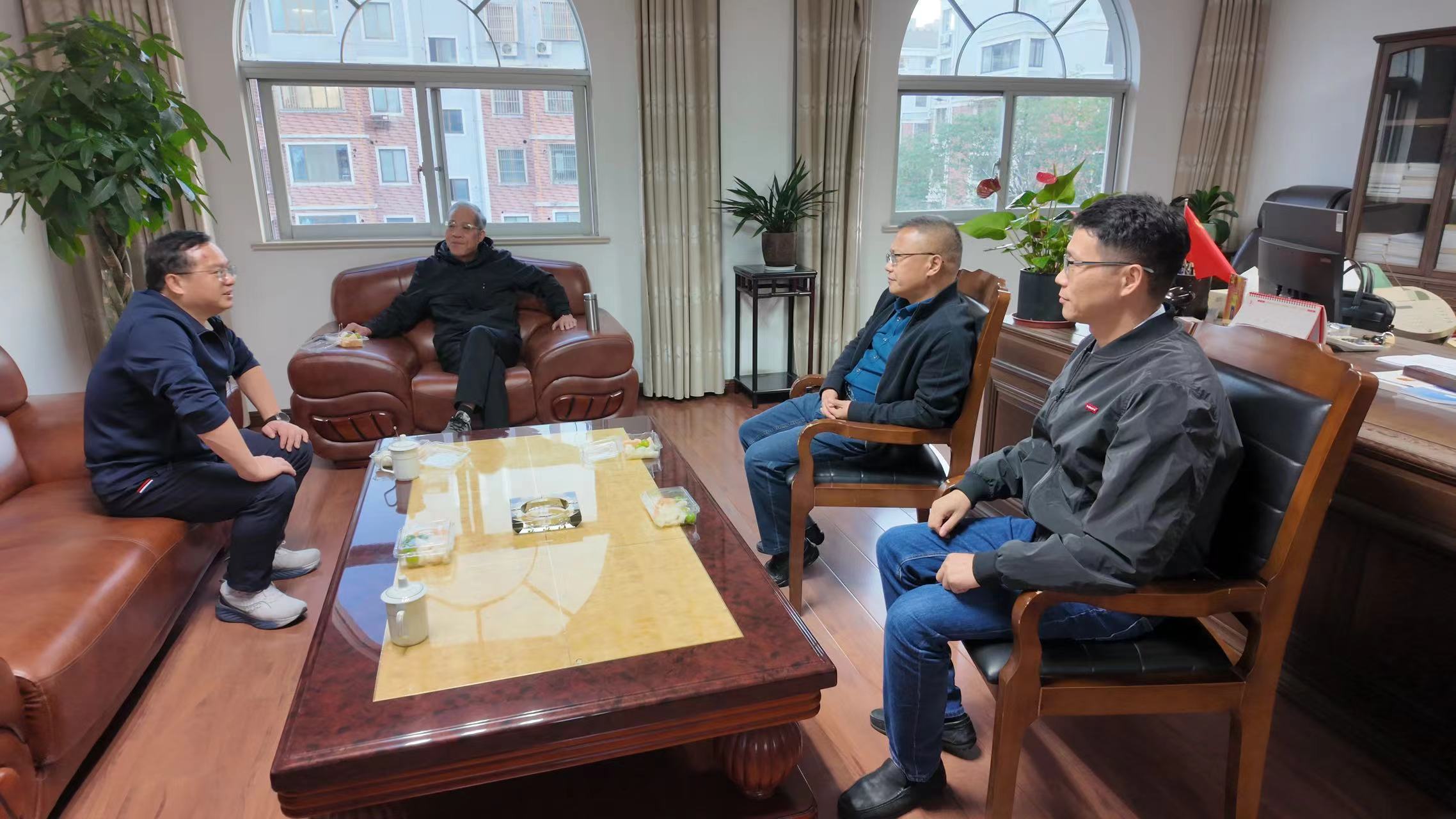10月28日下午,温氏股份副总裁兼财务总监林建兴到访京海集团,就强优化产业链资源配置、推进成本管控与价值提升等方面进行专项调研。京海集团党委书记、董事长顾云飞,总经理王宏胜、常务副总经理谭晓峰、总经理助理邱聪等核心管理团队热情接待并参与调研活动。