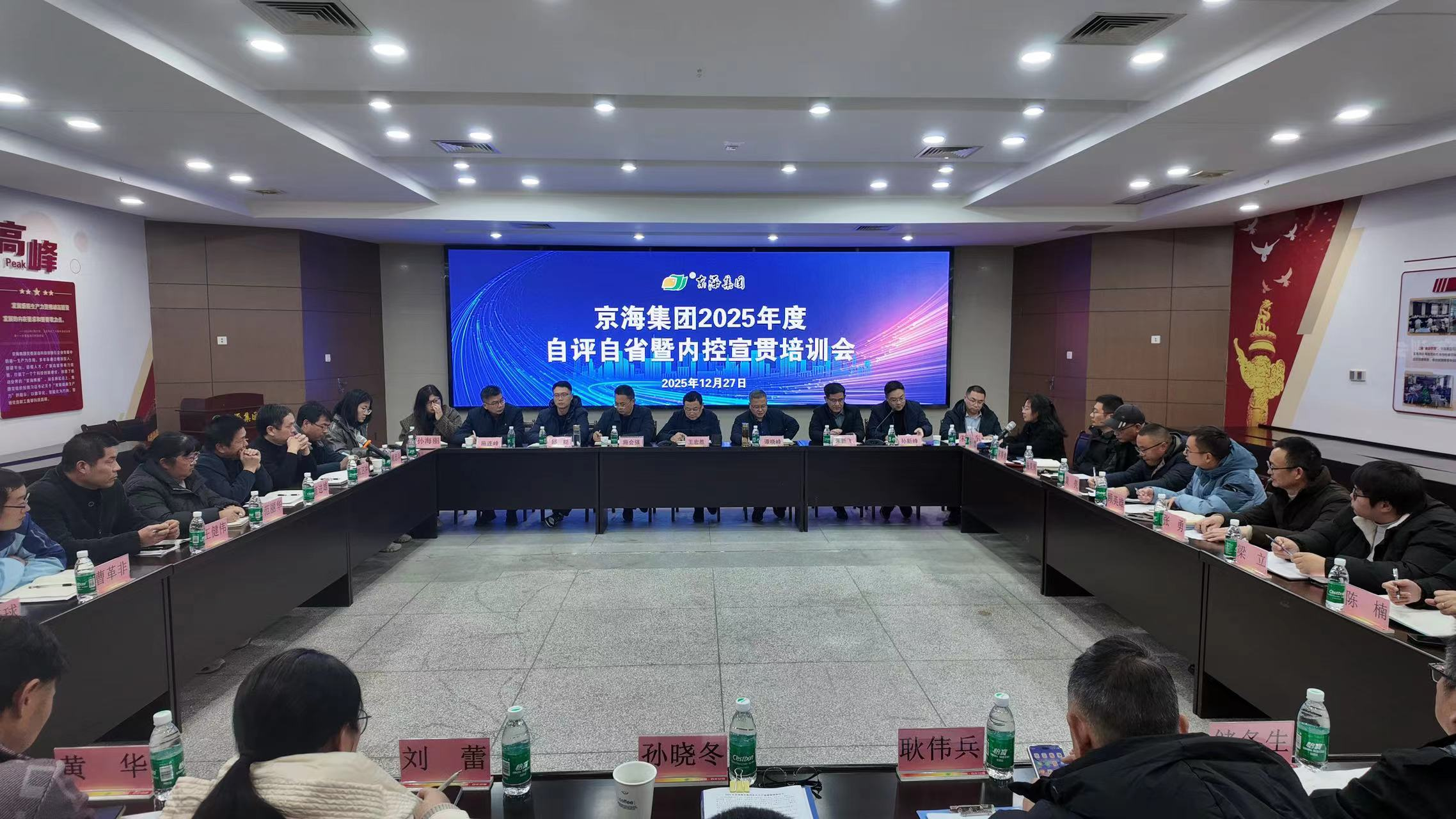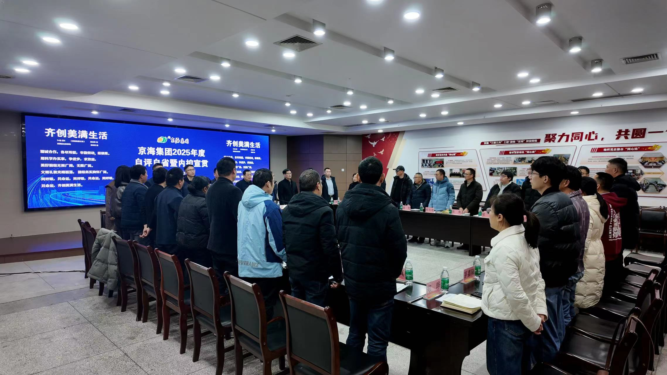 12月27日下午,京海集团2025年度自评自省暨内控宣贯培训会议顺利召开。会议以“复盘过往 明方向,强化内控筑根基”为核心,通过自评自省凝聚发展共识,借助内控培训筑牢风险防线,为公司下一阶段高质量发展奠定坚实基础。总经理王宏胜、常务副总经理谭晓峰、副总经理施会强等公司相关领导及海门公司、如东公司所有行政和技术职务人员近百人线上、线下参会。