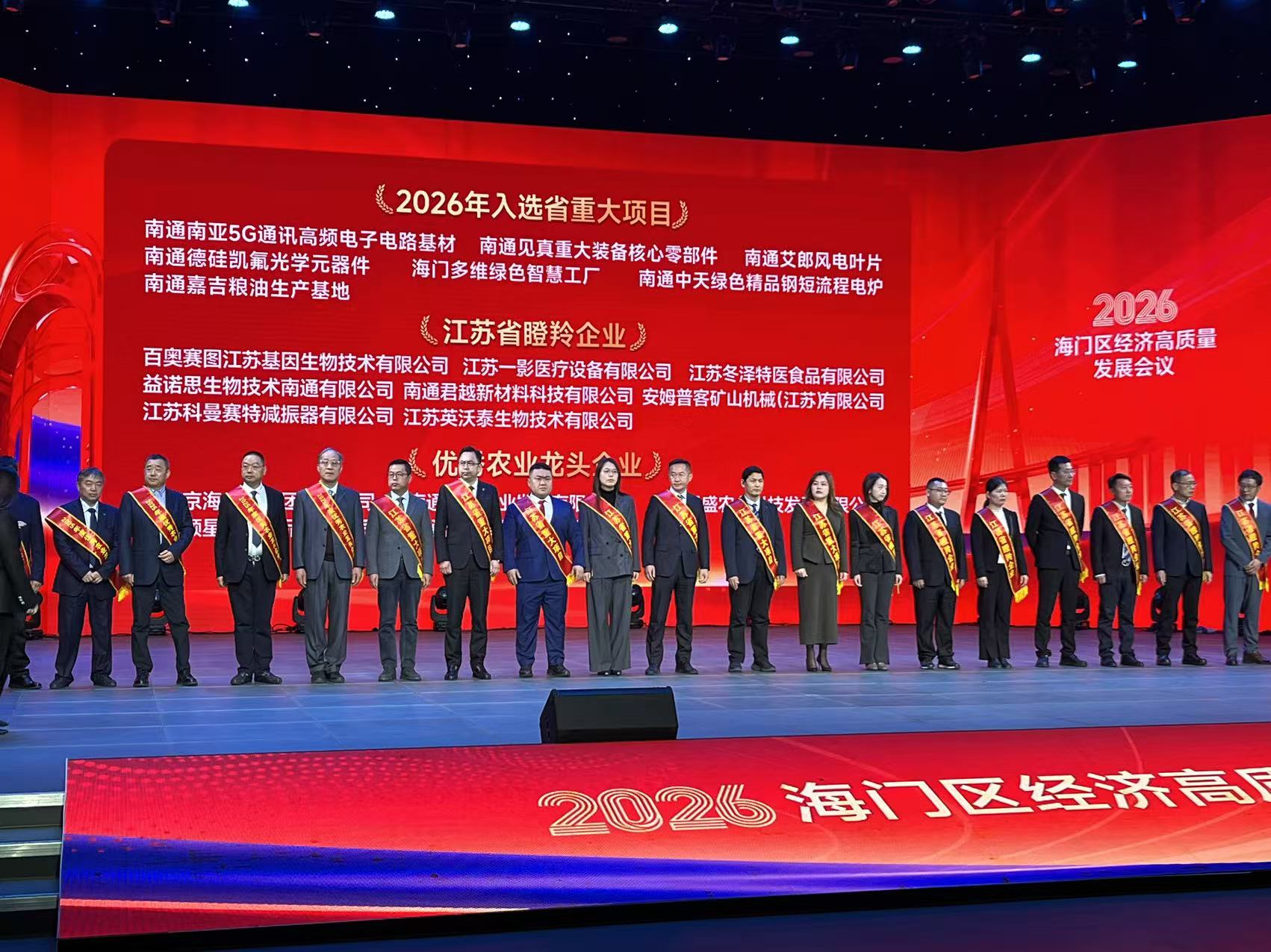 2月26日,海门区委、区政府召开全区经济高质量发展会议,隆重表彰为区域高质量发展作出突出贡献的优秀企业,江苏京海禽业集团有限公司凭借在农业产业化、种业创新、乡村振兴等领域的卓越表现,获评海门区2025年度优秀农业龙头企业,公司董事长顾云飞受邀参会并上台接受领导表彰与授牌,这份荣誉既是区委、区政府对京海禽业发展成果的高度认可,更是对企业深耕海门、赋能行业的充分肯定。